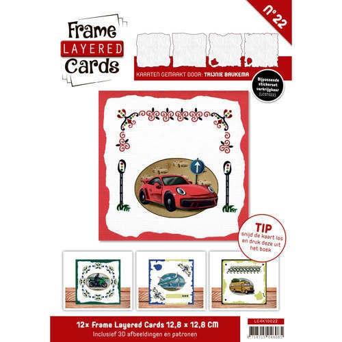 Dit Frame Layered Cards Book bevat 12 witte oplegkaarten, gestanst uit wit linnenkarton in 4 verschillende modellen met prachtige fantasieranden. Tevens zijn in het boek de werkbeschrijvingen, patronen en 3D-plaatjes van de voorbeeldkaarten opgenomen.