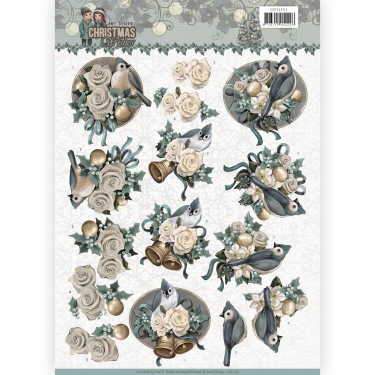 CD11151 - 3D Knipvel - Amy Design - Christmas wishes - Birds and Bells